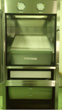 制药厂于生产过程中,室内空间纷飞的粉末、气味的污染造成人员工安问题,本公司产品“排气过滤网箱”特别设计符合C-GMP规范,循环或排风的过滤网箱,加装检测用的压差表、PAO注入口、浓度取样口,并符合PIC/S的防漏要求,过滤箱内完全气密设计;更进一步加装气密扫描板,扫描板上附有气密乳胶手套及扫描接头,以防止检测时的洩漏所造成的反向污染。